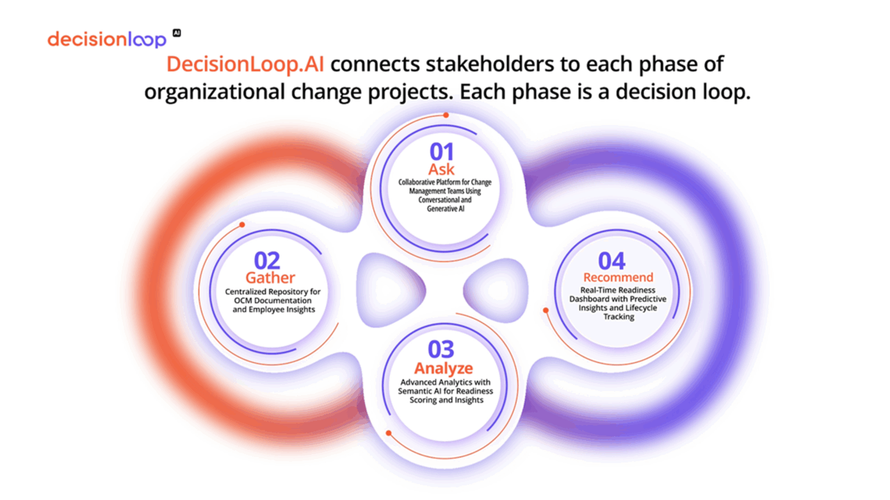 Explore a dynamic motion graphics infographic showcasing how DecisionLoop.AI connects stakeholders